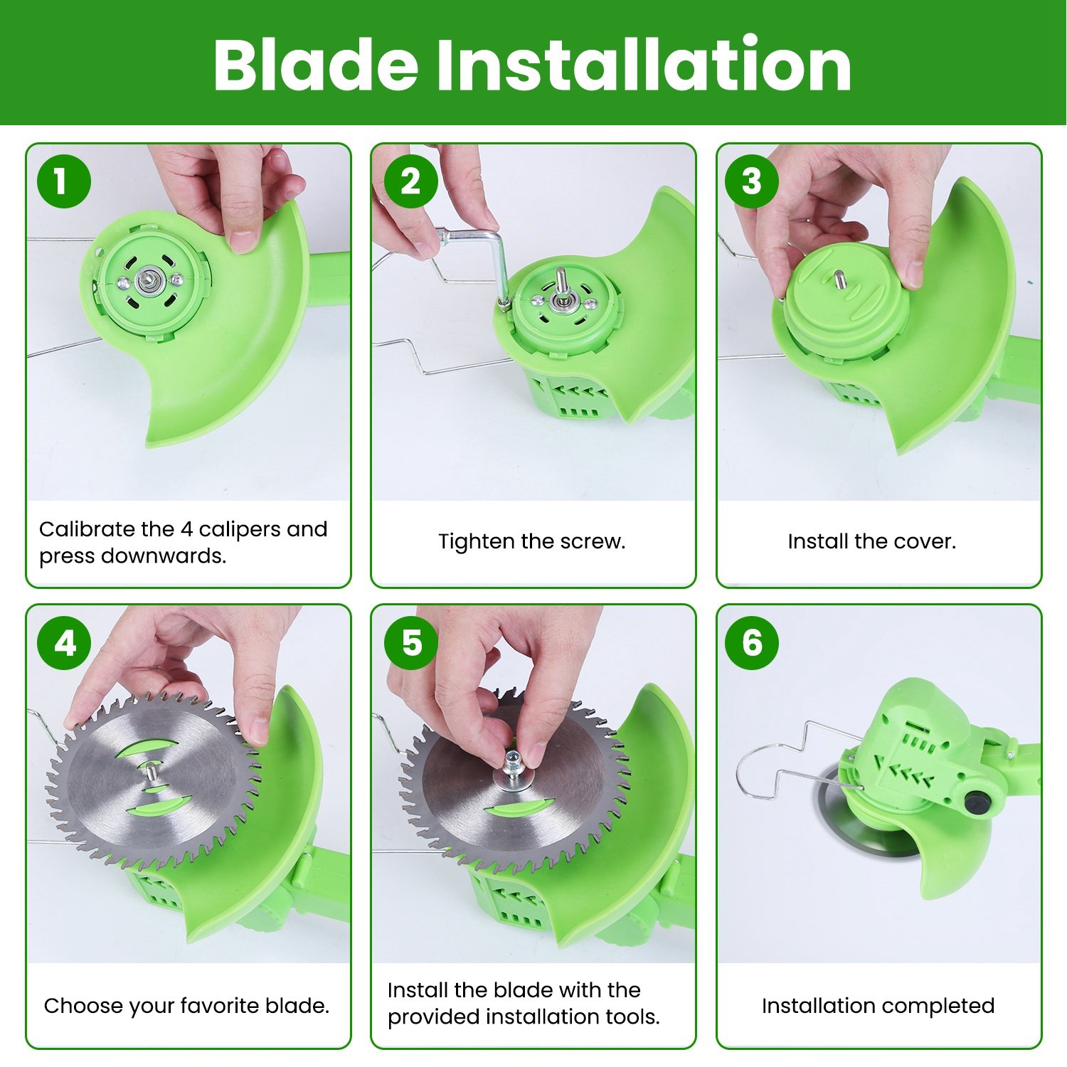 Ready to transform your lawn care routine with effortless efficiency? With 2Pcs 1200mAh rechargeable batteries and built in 200W powerful motor, our cordless grass trimmer runs 60 minutes for continuous use and offers 9000m/min no-load speed. Cordless and rechargeable, say goodbye to cumbersome cords. Feature 34.25-48.82in adjustable length and tiltable head for far or hard to reach corners. Easy to install and operate. Provide 1Pc saw blade for crop and bush cutting, 2Pcs stainless steel blades for bush and thick grass pruning, and 10Pcs plastic blades for lawn mowing. Suitable for various lawn trimming of family farms, garden, yard, and etc..