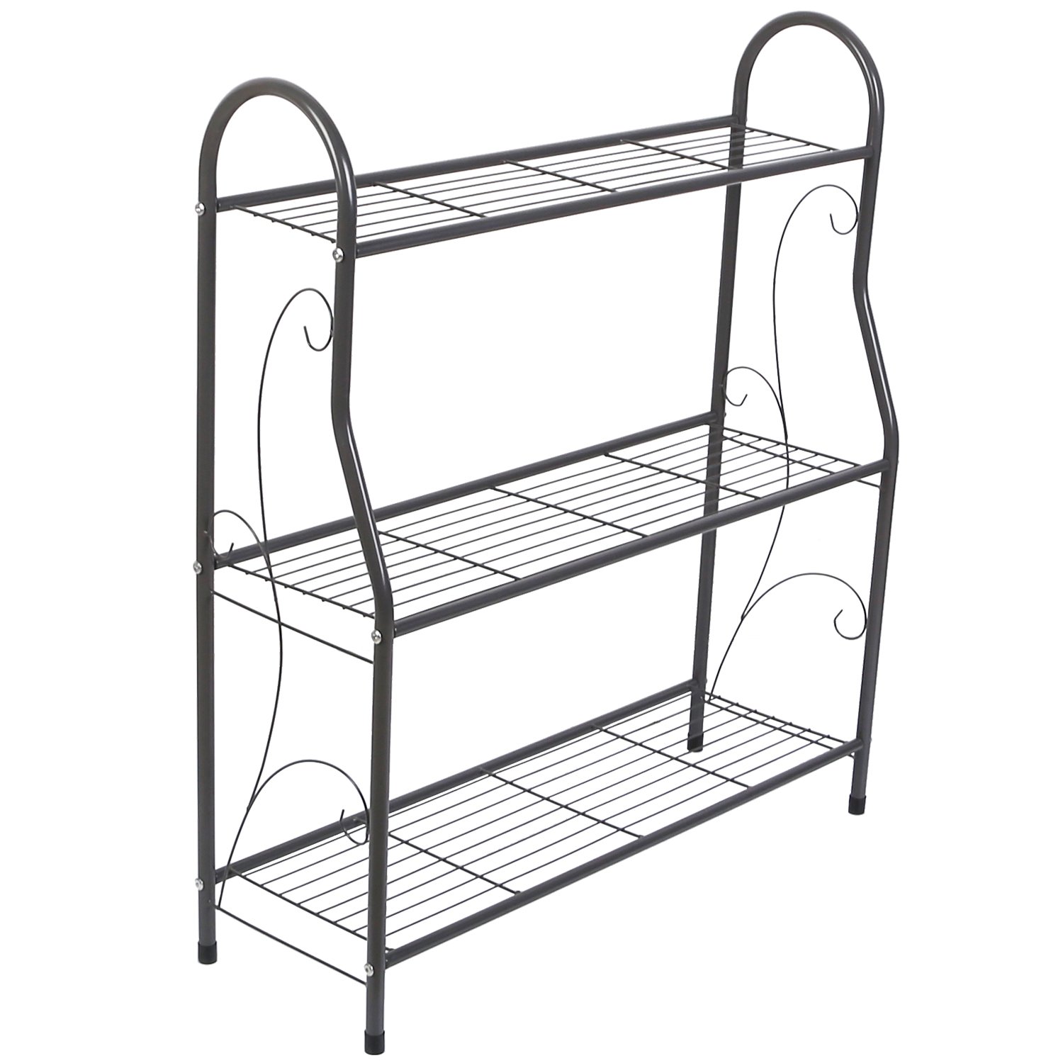 This 3 tiers plant rack can be used as a storage rack or display shelf for all kind of plants, shoes, towels, utensils, sundries decorative things in your family for patio or balcony. The iron frame has a strong bearing capacity and is up to 88lbs. Elegant and practical, the beautiful pattern on the side makes your flower stand chic. The 3 tier framework planter stands give you more convenience and choice of store and display various plants such as lush greenery, potted succulents and so on. Easy to install within 15 minutes.
