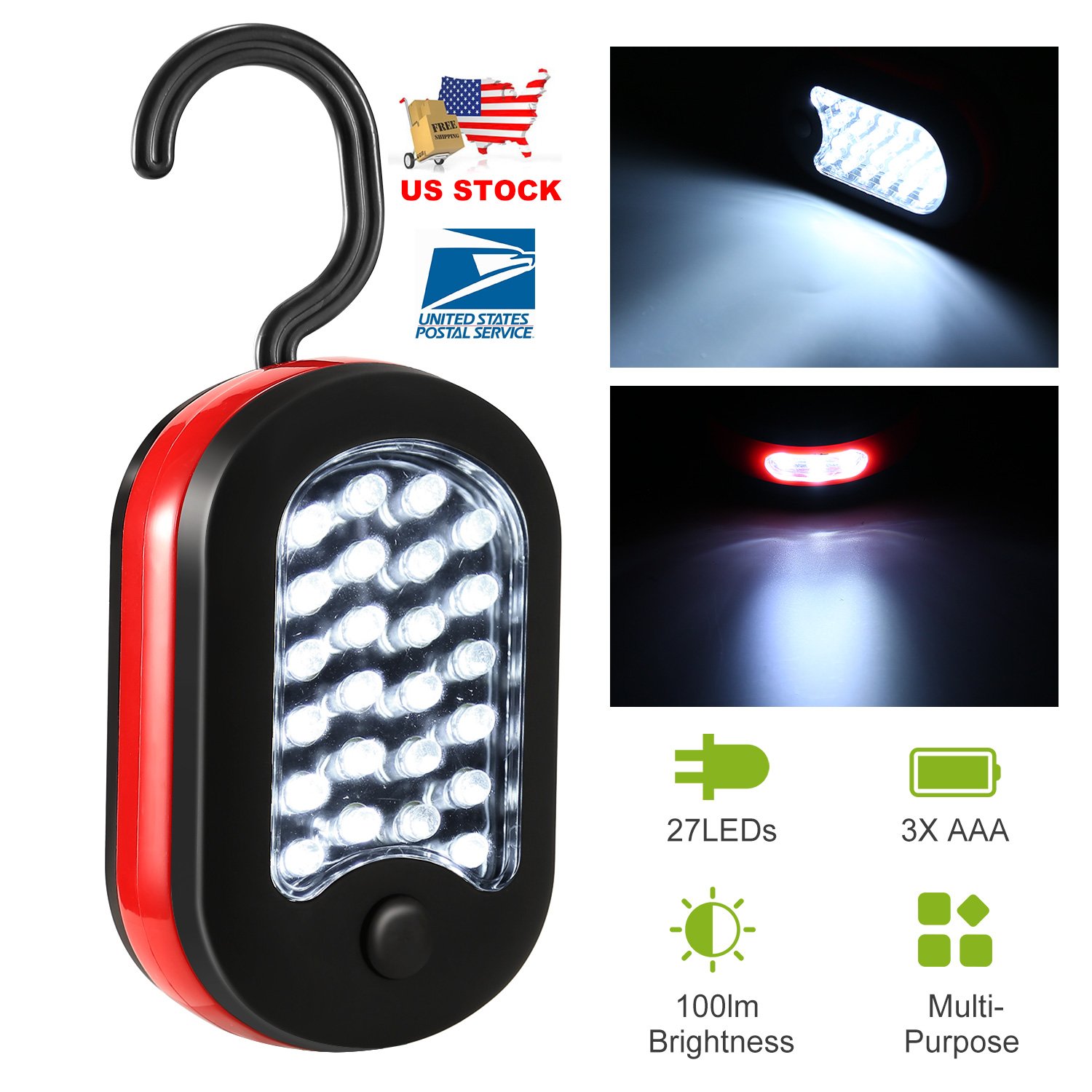 Compact Work Light 27LEDs Hang Lights Portable Magnetic Flashlight with Hook for Camping Hiking Emergency