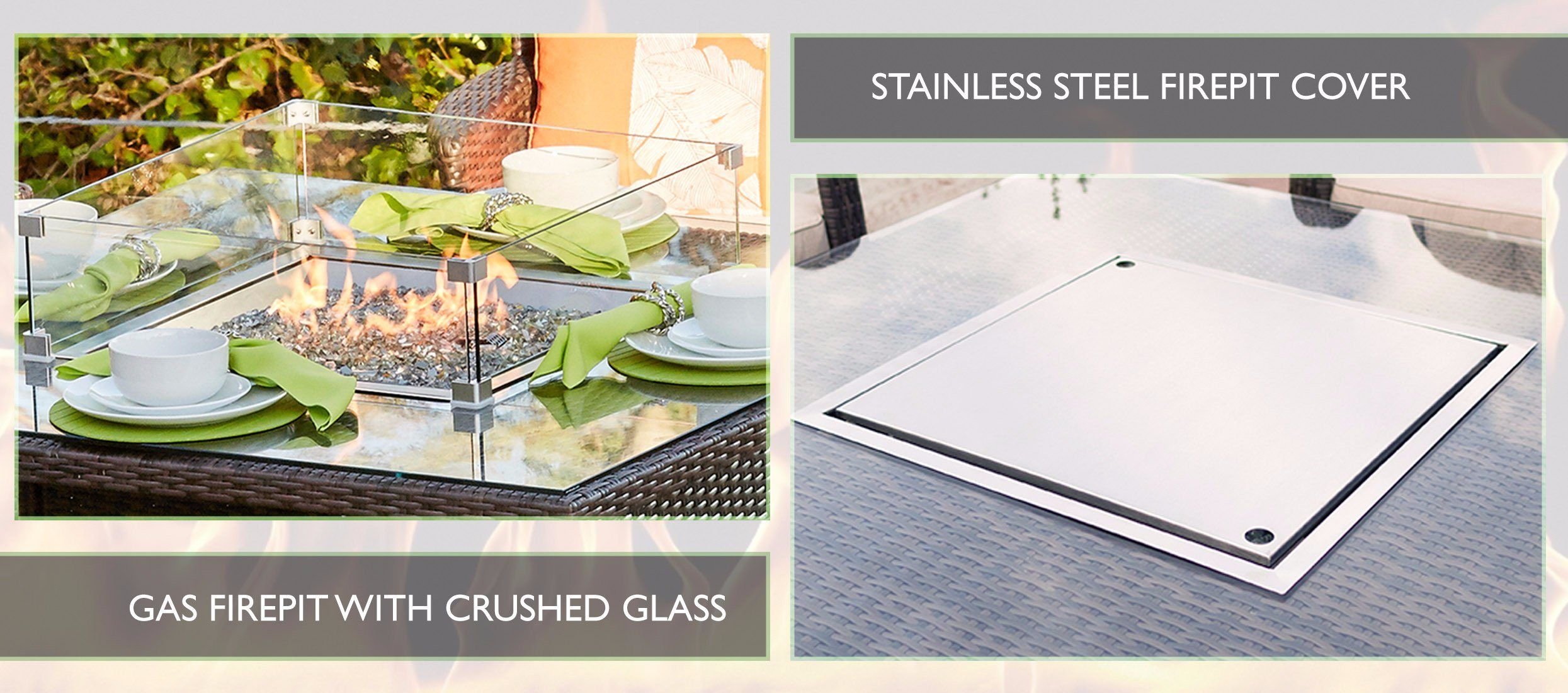 The dining table has a gas fire pit with multiple heat settings so you can prolong your outdoor relaxation long into the night.