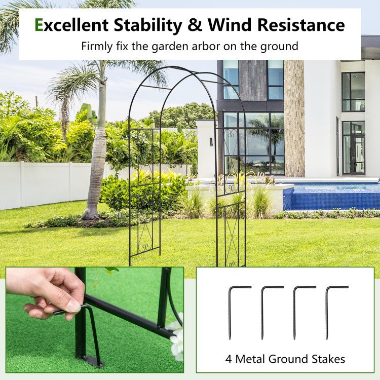 2.Excellent Stability and Wind Resistance: The heavy-duty metal garden arbor is equipped with 4 metal ground stakes, which can firmly fix it on the ground, promising great stability in a gentle breeze. (Note: This garden arbor may wobble if it does not fix with the stakes.)