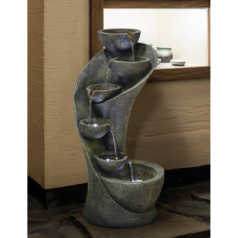 23.5inches Outdoor Water Fountain with LED Light - Modern Curved Indoor-Outdoor Waterfall Fountain 23.5inches Outdoor Water Fountain with LED Light - Modern Curved Indoor-Outdoor Waterfall Fountain 23.5inches Outdoor Water Fountain with LED Light - Modern Curved Indoor-Outdoor Waterfall Fountain