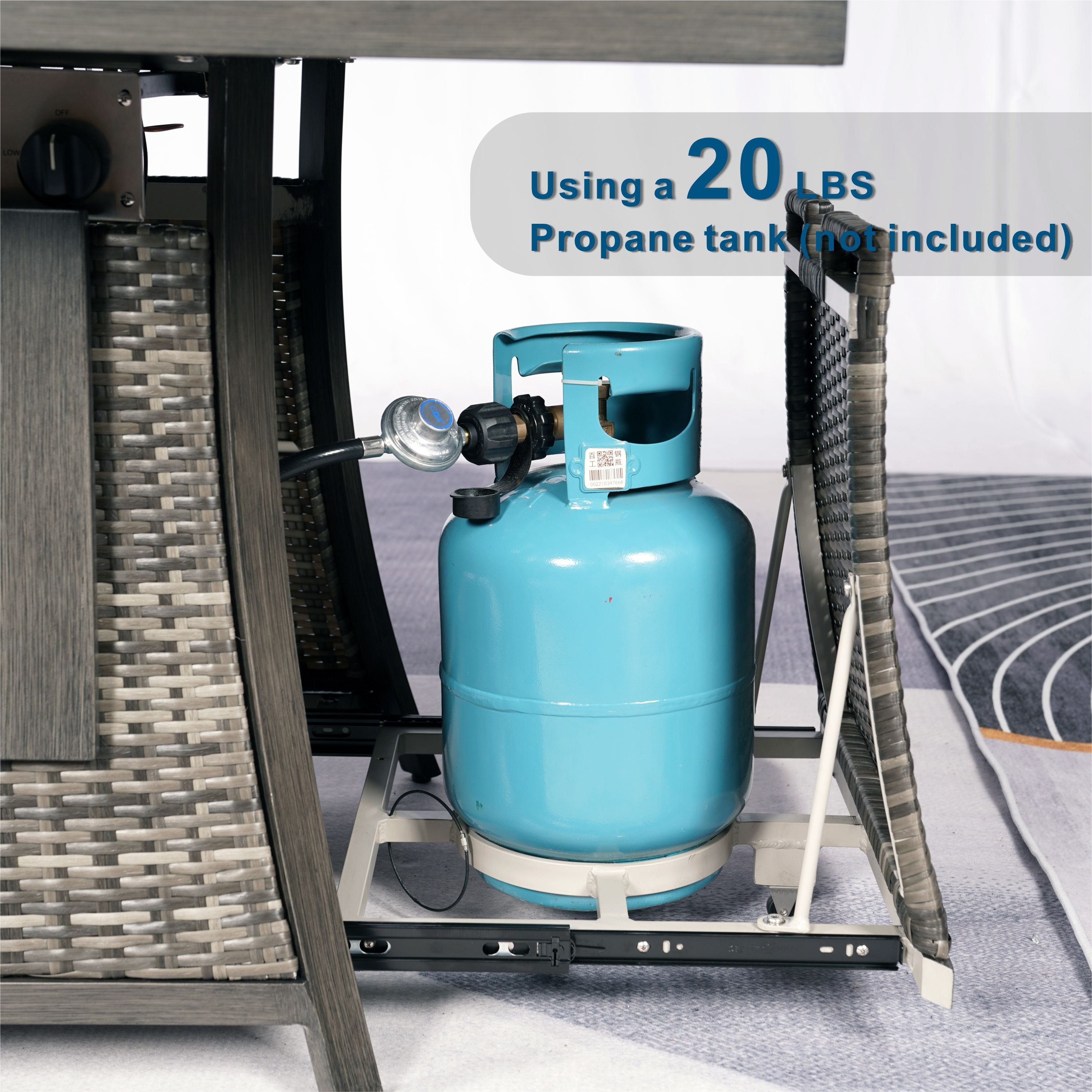 One aluminum gas fire pit table = one rectangle rattan wicker table + one firepit system
