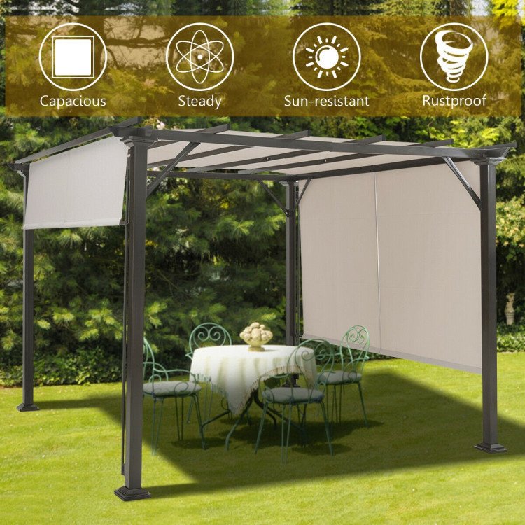 Besides; constructed by a reinforced steel frame with a powder-coated finish; the gazebo is rustproof and durable for long term use. More; the reinforced structure and 8 anchors ensure that it remains stable in windy conditions. Most importantly; you can flexibly adjust the retractable canopy on both sides according to your own preferences. The pergola gazebo in a stylish design matches different outdoor styles. You can use it for BBQs; parties; picnics with your family and friends. The pergola will give you the best shading experience!