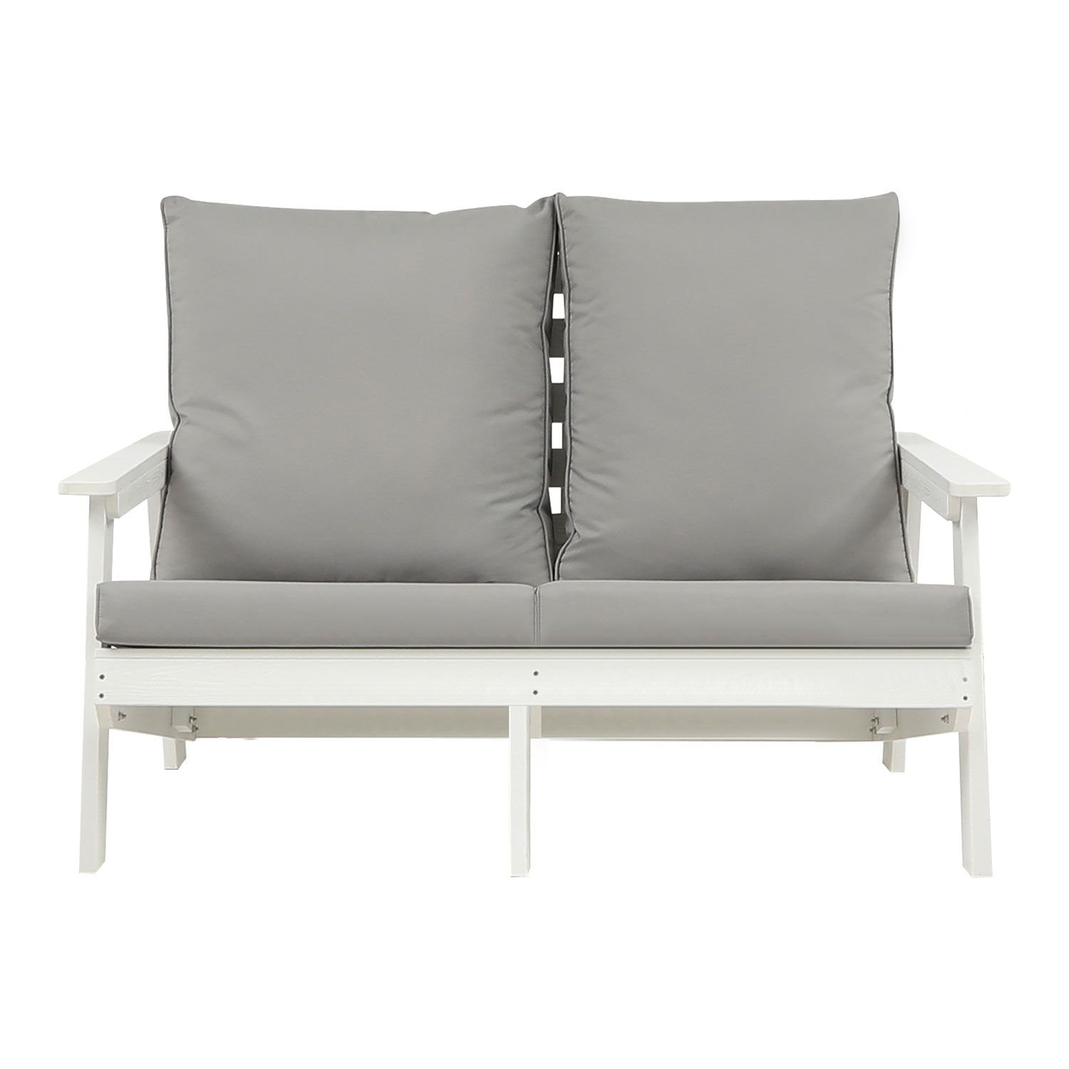 HIPS Loveseat with Cushion, Wood Grain Outdoor Garden Sofa,White/Grey HIPS Loveseat with Cushion, Wood Grain Outdoor Garden Sofa,White/Grey HIPS Loveseat with Cushion, Wood Grain Outdoor Garden Sofa,White/Grey