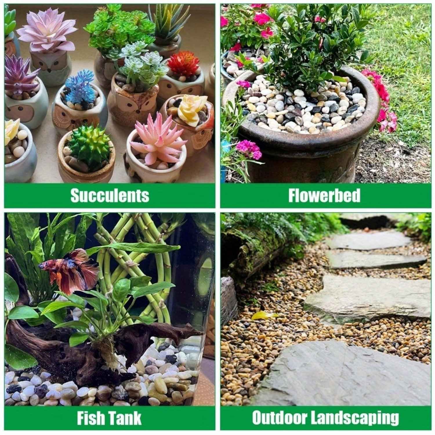 [Rocks for Landscaping]Decorative stones can be used for a variety of purposes. Great for decoration of potted plants luck bamboo aquarium rocks glass container bird fountains fish tank rocks and outdoor garden. D I Y designing wall, fireplace,craft project,walkways pavement and other decor is a new experience. If you have a better idea, please share it with us under the review