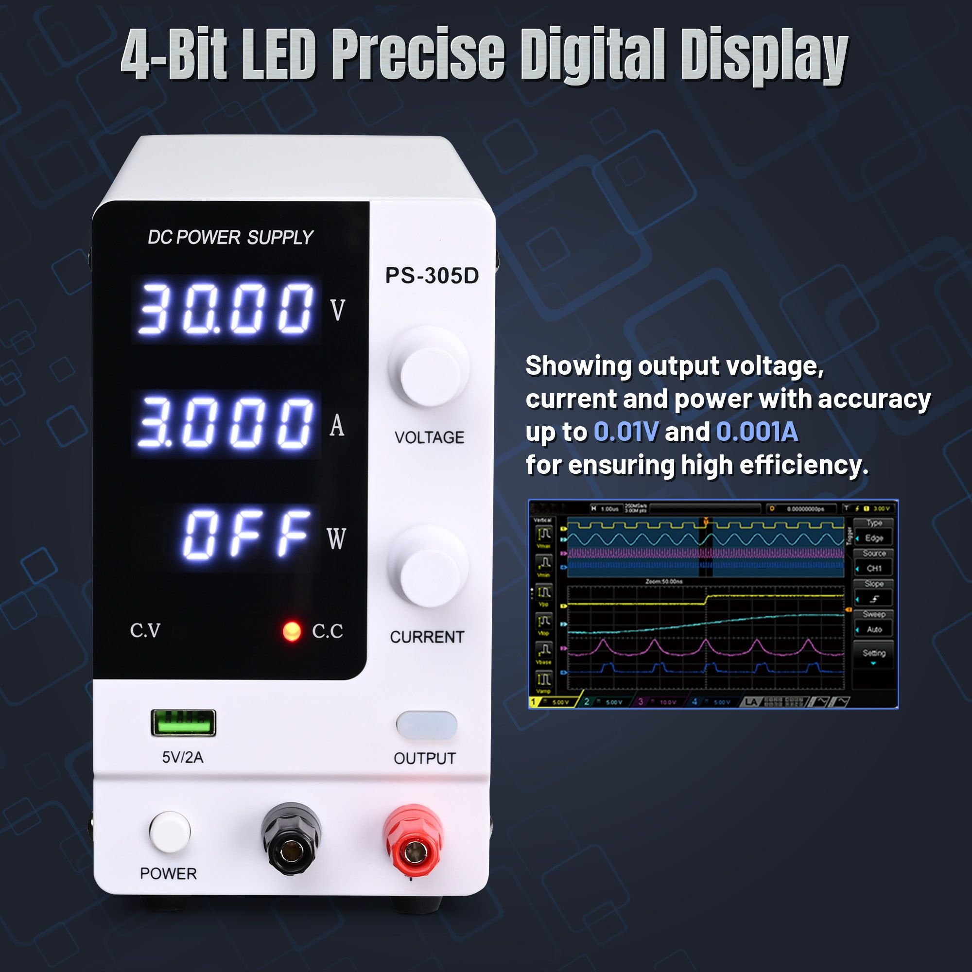 - Easy Operation - This DC Power Supply features constant voltage and constant current operation mode for automatic conversion, allowing for easy adjusting by rotating the voltage adjustment knob and current adjustment knob; Comes with a USB port for charging electronic device