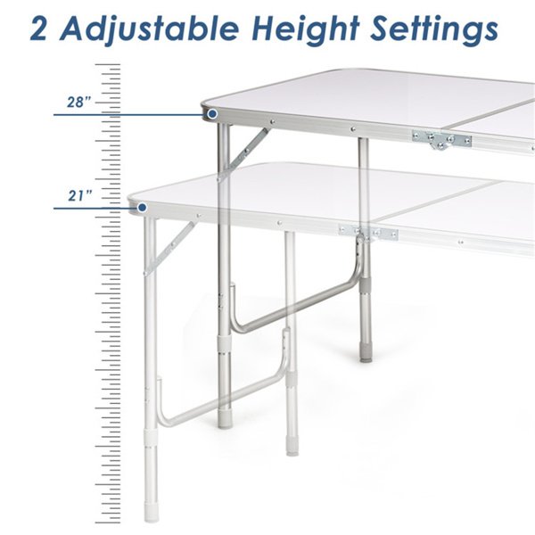 ● 2 Height Settings and Easy Installation: By adding or removing extra table legs, you can set the table to two different heights, 21 inches and 28 inches. Besides, you only need to spread the legs of the table to complete the assembly, and whole process takes only a few seconds.