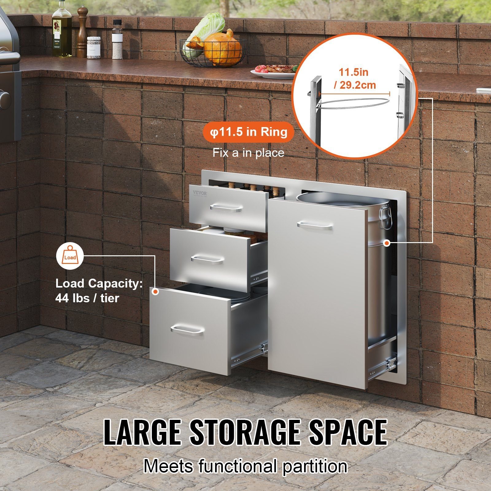 VEVOR Outdoor Kitchen Door Drawer Combo 29.5" W x 22.6" H x 21.7''D, Access Door/Triple Drawers with Propane Drawer and Adjustable Garbage Ring, Perfect for BBQ Island Patio Grill Station