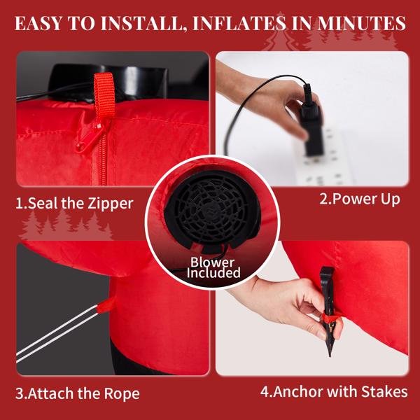 4. Durable and Weather-Resistant: Crafted from high-quality, waterproof polyester, this blow up decoration is designed to last through many holiday seasons. The material resists tears and fading, while reinforced stitching prevents leaks, ensuring that your inflatable remains in perfect condition year after year.