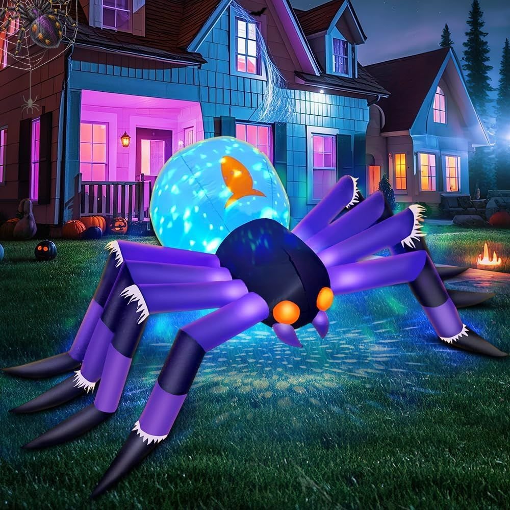[ Unique Halloween Inflatable]Unique inflatable spider halloween outdoor inflatable Halloween decor ,spider inflatable halloween decorations Halloween Inflatable will illuminate your yard and easily attract the guests, friends, and kids' attention so that can be the most attractive & halloween decorations outdoor in your neighbors.[Stronger Inflatable Fan] Equipped with an Halloween decorations outside blow ups, the inflatable Halloween decorations can be inflated quickly in two minutes, it is efficient and fast. Halloween inflatable outdoor decoration Halloween inflatable spider have a rechargeable plug with UL Certified adapter are very safe to use, indoor and outdoor connected to the power supply can be inflated.[3-Colored Flame Rotation Leds& High Quality Materials]Halloween spider inflatable use 3-colored flame rotation Leds,light up your garden at night! Halloween blow up decorations outside are made of 210T waterproof polyester, make sure Halloween blow ups for yard can be used in rainy days. Halloween outdoor decorations inflatable have top quality that resist tearing and durable. The vivid color won't discolor adopting spraying technology.[Easy to Inflate] Halloween inflatable outdoor decoration outside will self-inflate in minutes when the blower works, you just plug it with standard electrical outlet. You can easily pop up the inflatable Halloween decorations outdoor. Don't forget to zip up the bottom zipper before inflated. Once deflated, its compact design makes it easy to store in a gift box and use for next Holiday.[Halloween Decorations Outdoor]These inflatable Halloween decor are designed specifically for Halloween Holiday/parties/carnivals/festivals, so easy to add character to your outdoor Halloween decor. Perfect Halloween blowups for yard, front porch, patio, mall, party. Can't not wait to put inflatable halloween decorations spider for Halloween.Your neighbors will love it! Trick or treat event decoration, festive night event. Enjoy and hi up!