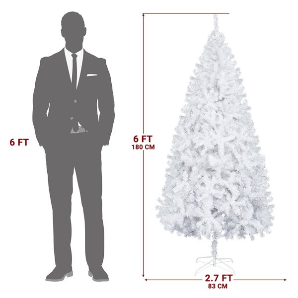 6 FT Artificial Christmas Tree with 800 Branch Tips and Sturdy Metal Stand, White 6 FT Artificial Christmas Tree with 800 Branch Tips and Sturdy Metal Stand, White 6 FT Artificial Christmas Tree with 800 Branch Tips and Sturdy Metal Stand, White