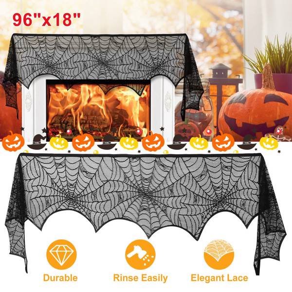 Are your ready for your Halloween decoration? iMounTEK Halloween fireplace scarf is paired with more Halloween party decor. Halloween elements, spiders, vampires, will together make up the Halloween decorations you want. Creating the perfect ambiance for your Halloween or other party with elegant spooky black lace decor accessories. Elegant spooky additions for haunted house, mansion and castle scenery or party decor. In addition, enjoy a unique Halloween decorations with the black lace spiderweb fireplace mantle. Time to decorate your fireplace, mantel, window, door, hutch, porch, and grab all Halloween fun.