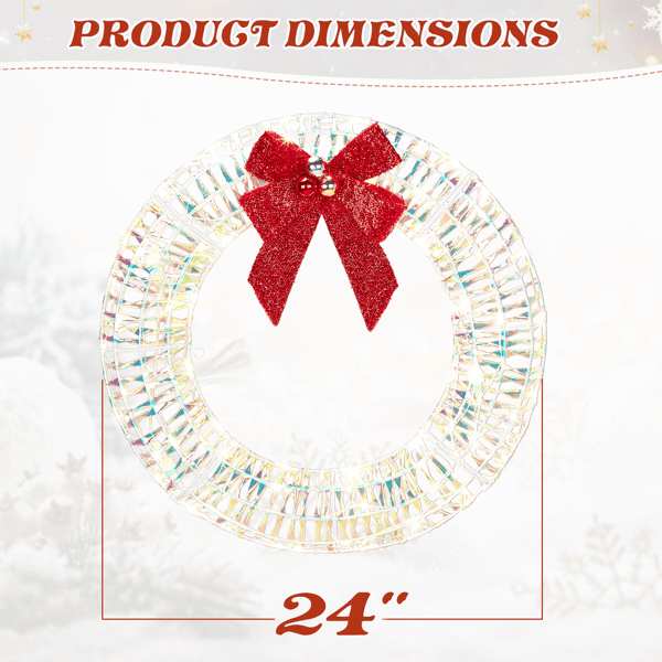 24in Pre-lit Iridescent Outdoor Christmas Wreath Decoration, Lighted Metal Wreath with Red Bow, Warm White LED Lights 24in Pre-lit Iridescent Outdoor Christmas Wreath Decoration, Lighted Metal Wreath with Red Bow, Warm White LED Lights 24in Pre-lit Iridescent Outdoor Christmas Wreath Decoration, Lighted Metal Wreath with Red Bow, Warm White LED Lights