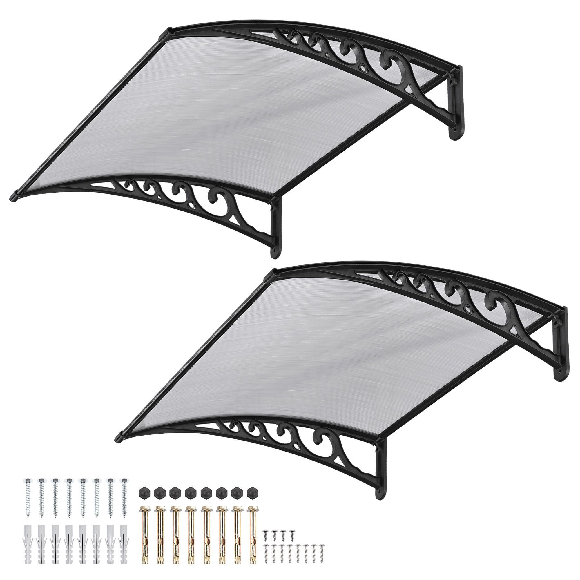 - Versatile Transparent Shelter - 2 packs of 40"x40" awnings feature transparent color for providing sufficient light and clear sight when reading or doing outdoor activities, and effectively protect your door, window from UV rays, rain & light snow