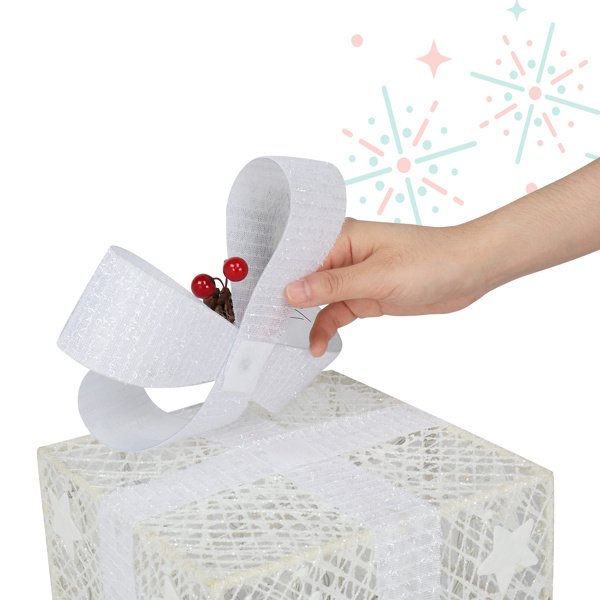 3pcs Square ABS Plastic Rack Garden Festive Decoration LED60 Light Warm White Light Cotton Thread Powder Gift Box