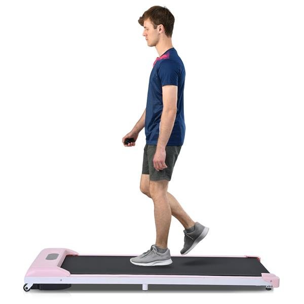 About this item2 in 1 Under Desk Treadmill. The independent remote control can efficiently control and adjust the running speed and improve the running safety. Available in 0.5 to 4 MPH Speed levels, this walking treadmill allow you to select different speed base on your physical condition and exercise based. Maximum weight: 260lbs.With a 2.5 HP powerful quiet Motor,the electric treadmill is perfect for running, jogging, and walking in the comfort of your home. With a durable steel frame and multi-layer shield design, the under desk treadmill's shock-absorbing and noise-reducing, making your running quieter, safer and more comfortable.The LED display clearly shows time, calories, step, speed and distance, monitoring your progress in real time and keeping your movement data at a glance. No Assemble & Space-saving: Unlike the traditional treadmills, our walking and running 2 in 1 treadmill is no assemble needed, designed to be lightweight, portable and easy to store under the bed or desk. Wheels at the bottom are for easy transportation.39.37"x 14.96" Widened Running Belt Making running or walking on this treadmill more freely. 5 layers non-slip running belt and Silica gel column support will greatly absorb shock to provide cushioning for knee, muscle and joints.Walking Pad Under Desk With Remote ControlWalking Pad With UL ReportWalking Pad With BluetoothWalking Pad