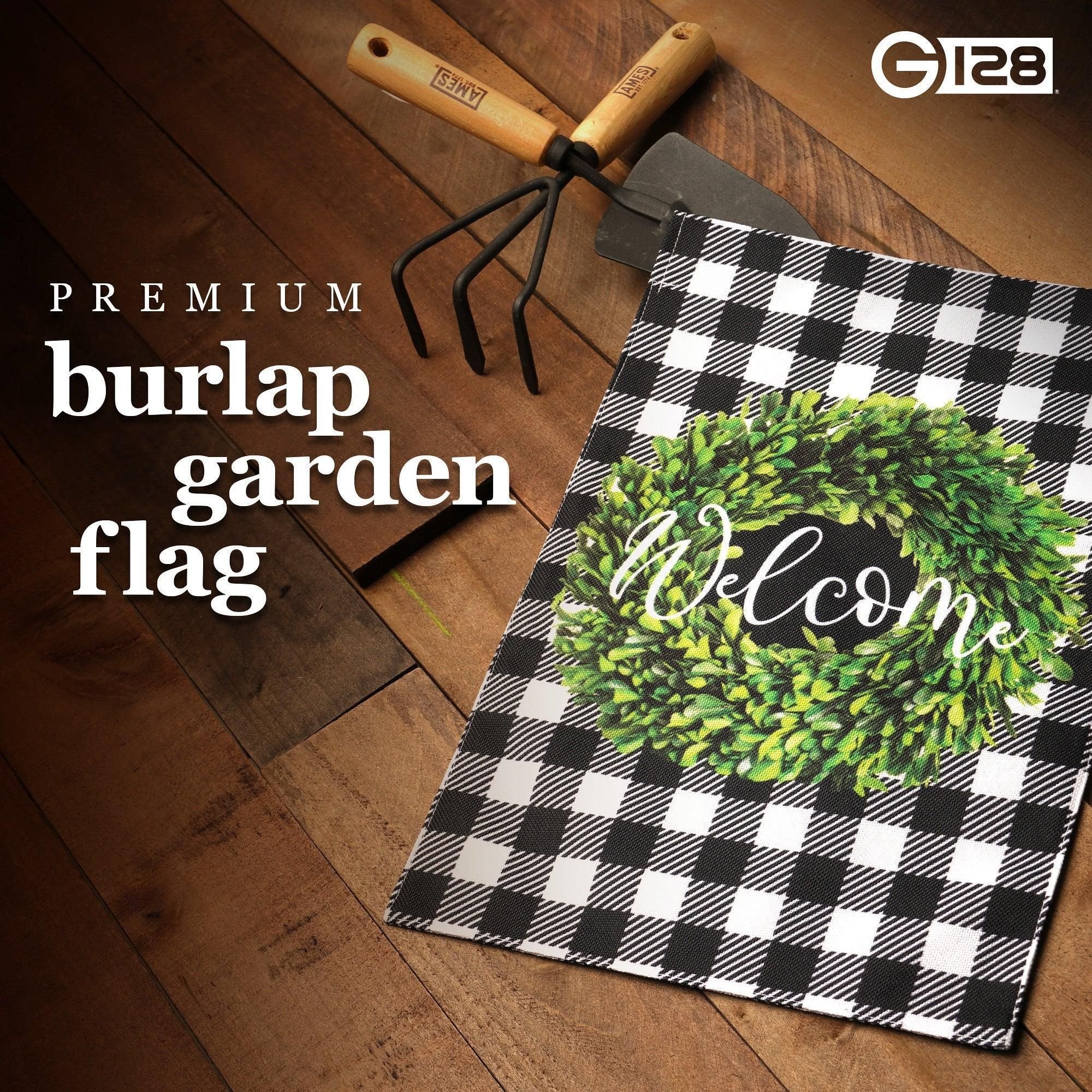 Garden Flag Welcome Wreath 12x18 Inch Printed Burlap Polyester Everyday Decoration