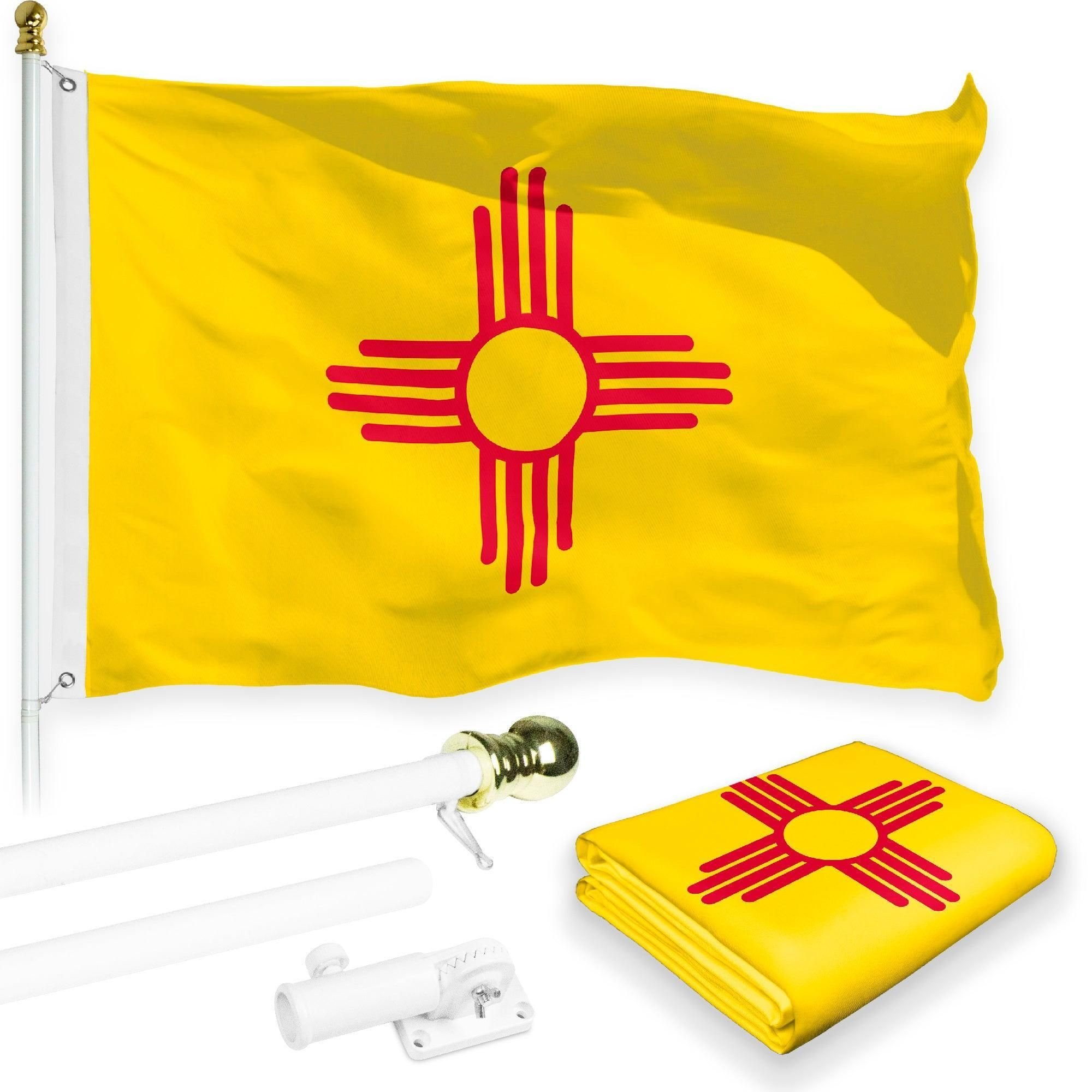 Home > Combo Pack 6 Ft Tangle Free Spinning Flagpole White New Mexico NM State Flag 3x5 ft Printed 150D Brass Grommets (Flag Included) Aluminum Flag Pole