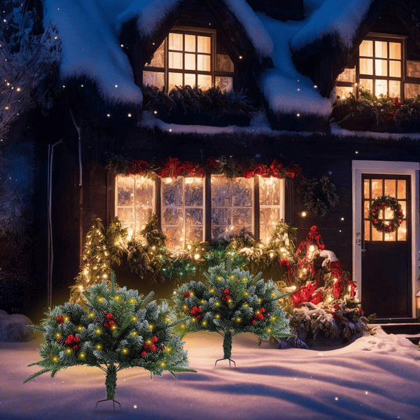 Elevate your holiday decorating with this stunning lifelike artificial Christmas tree, designed to bring nature's beauty indoors with its true-to-evergreen appearance, detailed foliage, pine cones, and red berries. Featuring 8 customizable lighting modes powered by 50 warm LEDs, it sets a cozy and romantic seasonal atmosphere. Battery-operated for cord-free convenience, it includes an energy-saving auto timer that cycles 6 hours on/18 hours off daily. With an IP44 waterproof rating, it's perfect for indoor and outdoor use--ideal for porches, gardens, patios, and more to effortlessly spread festive cheer.