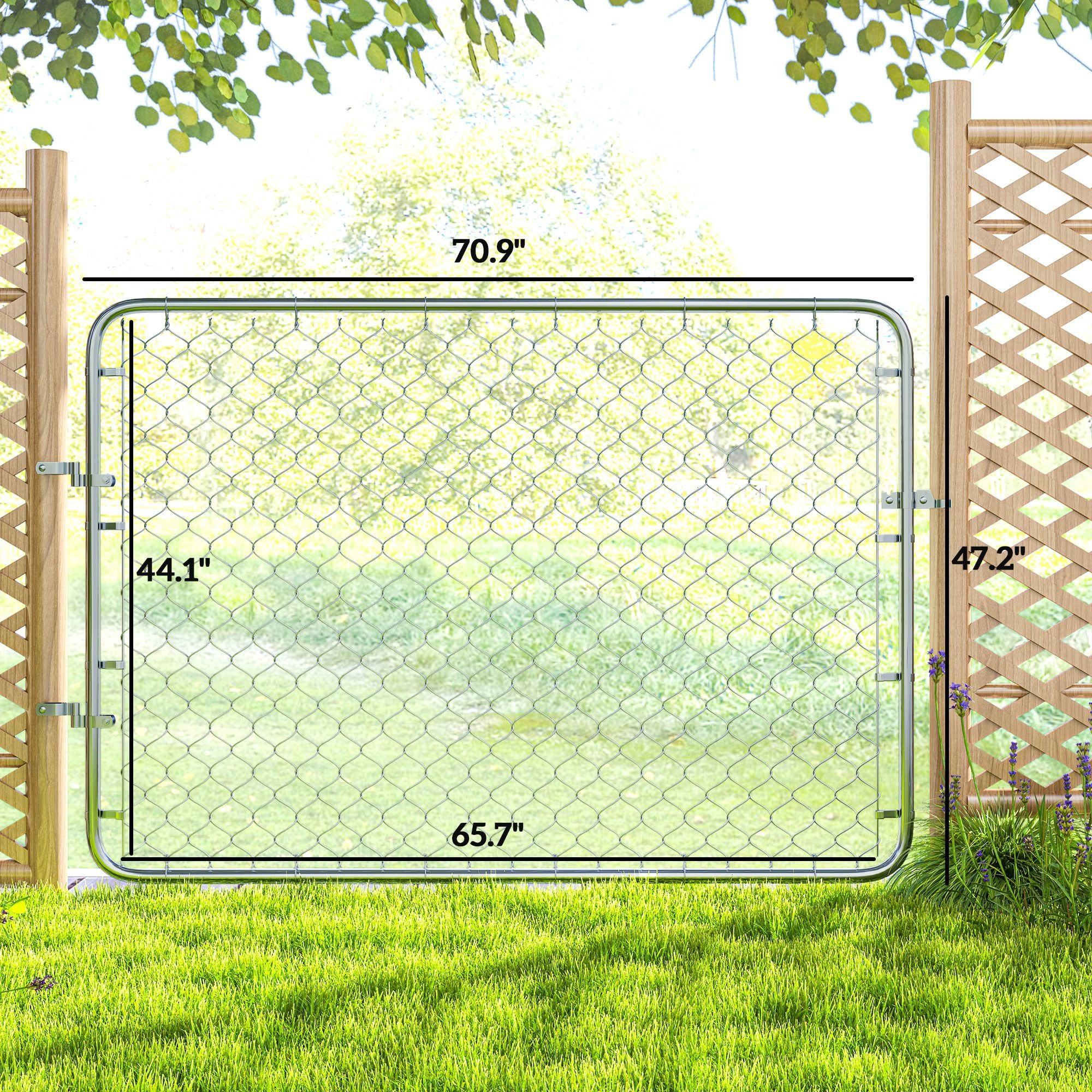 Home > Garden Gate Chain Link Fence Gate, Galvanized Steel Garden Door for Yard Entrance Way, 47.2" x 70.9", Silver