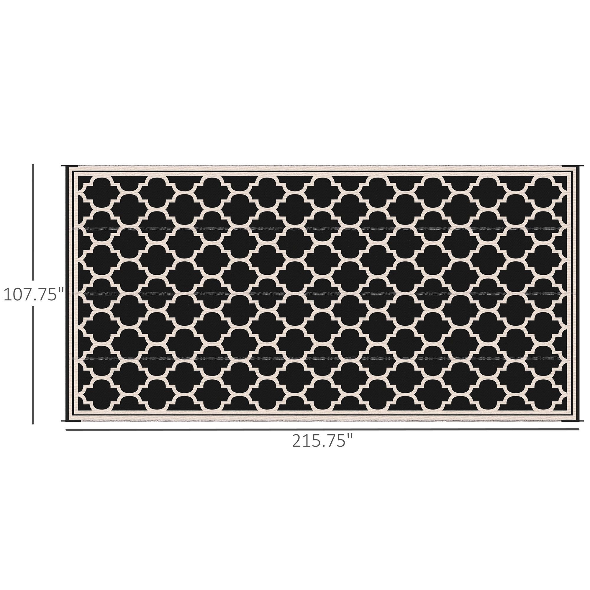 Camp out on the carpet with Outsunny. This waterproof carpet is a reversible outdoor rug designed to handle dirt. Outdoor-ready, this outdoor rug cleans up fast; sweep it, spray it, wipe it, or wave it; its powerful plastic fibers stay dry and don't saturate. Keep our rug in the camper, RV, or car. It's excellent for camping, beach barbecues, patio picnics, or anywhere you need it outside. The color is reversible, meaning you get two rug patterns in one package. Get out, get comfy, get Outsunny.