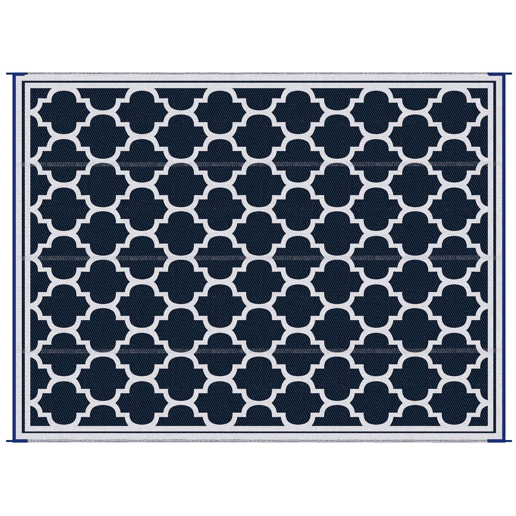 Camp out on the carpet with Outsunny. This waterproof carpet is a reversible outdoor rug designed to handle dirt. Outdoor-ready, this outdoor rug cleans up fast; sweep it, spray it, wipe it, or wave it; its powerful plastic fibers stay dry and don't saturate. Keep our rug in the camper, RV, or car. It's excellent for camping, beach barbecues, patio picnics, or anywhere you need it outside. The color is reversible, meaning you get two rug patterns in one package. Get out, get comfy, get Outsunny.