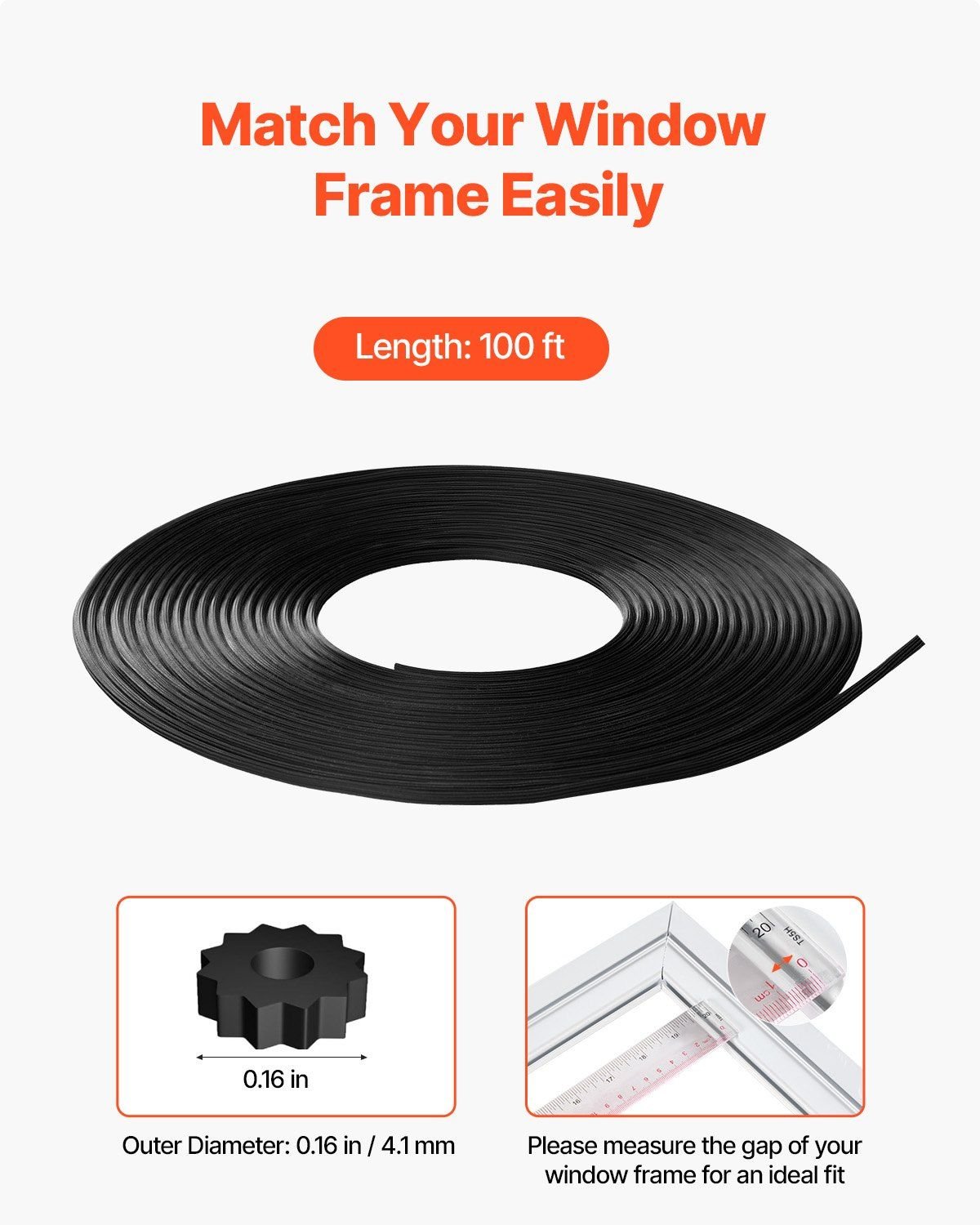 1.100 ft of Window Screen Spline: The window screen spline has an outer diameter of 0.16 in (4.1 mm) and a length of 100 ft, meeting the varying lengths needed for replacing screens on doors or windows. It can be easily cut to any desired length. Measuring tip: It is recommended to measure the gap size of the frame and select a spline that is 0.5 mm wider than the gap for optimal fit.