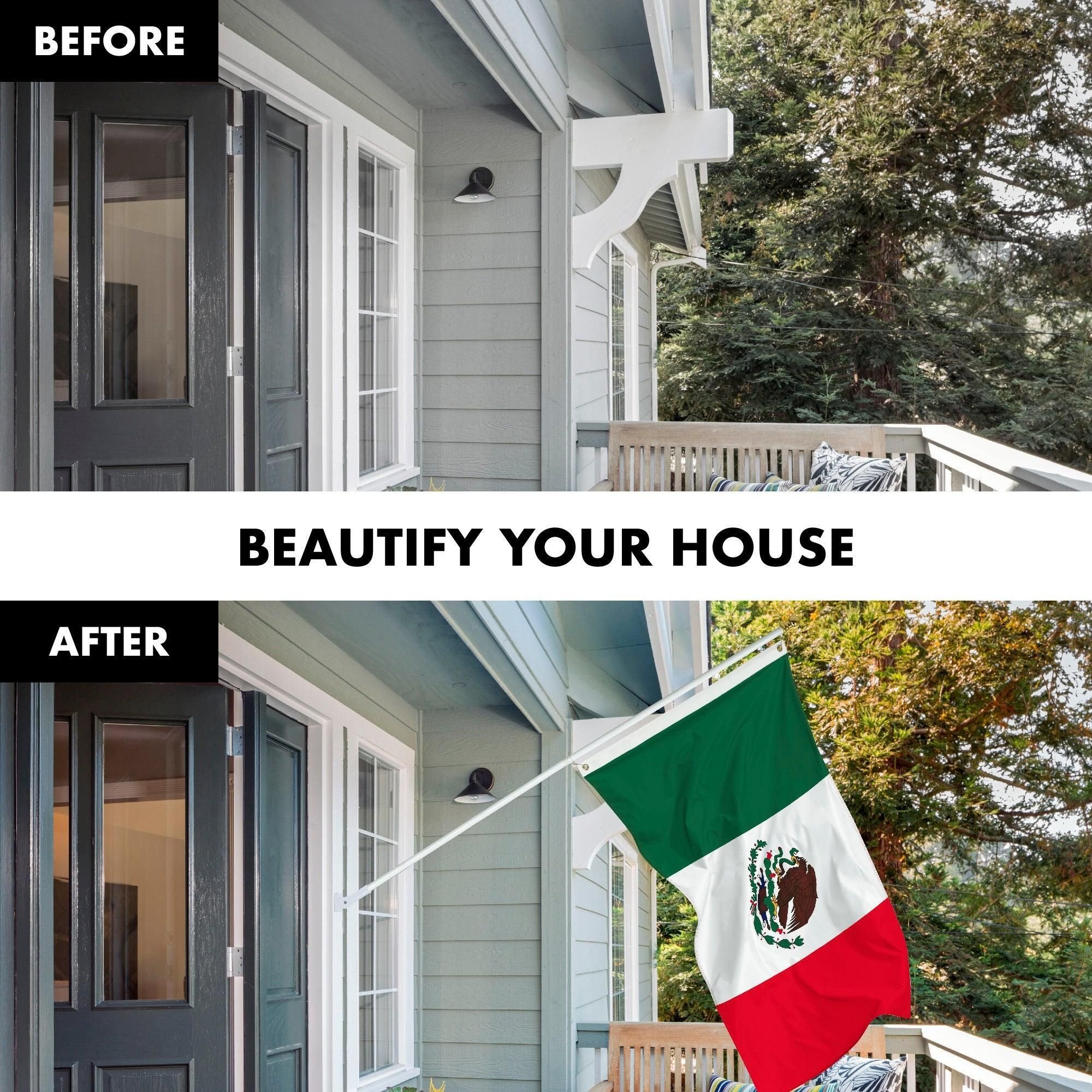 1.deluxe package: including a 3x5 ft printed mexico flag with brass grommets for this deluxe flag and flagpole package! all the guarantees of the quality of our flag is included in this package. tangle free: both mounting rings spin at respective positions so the flag is protected and never tangles. this free rotation system allows the flag to wave undeterred by the flag pole. heavy duty: rust resistant aluminum alloy allows the flag pole withstand the harsh weather conditions. multiple
