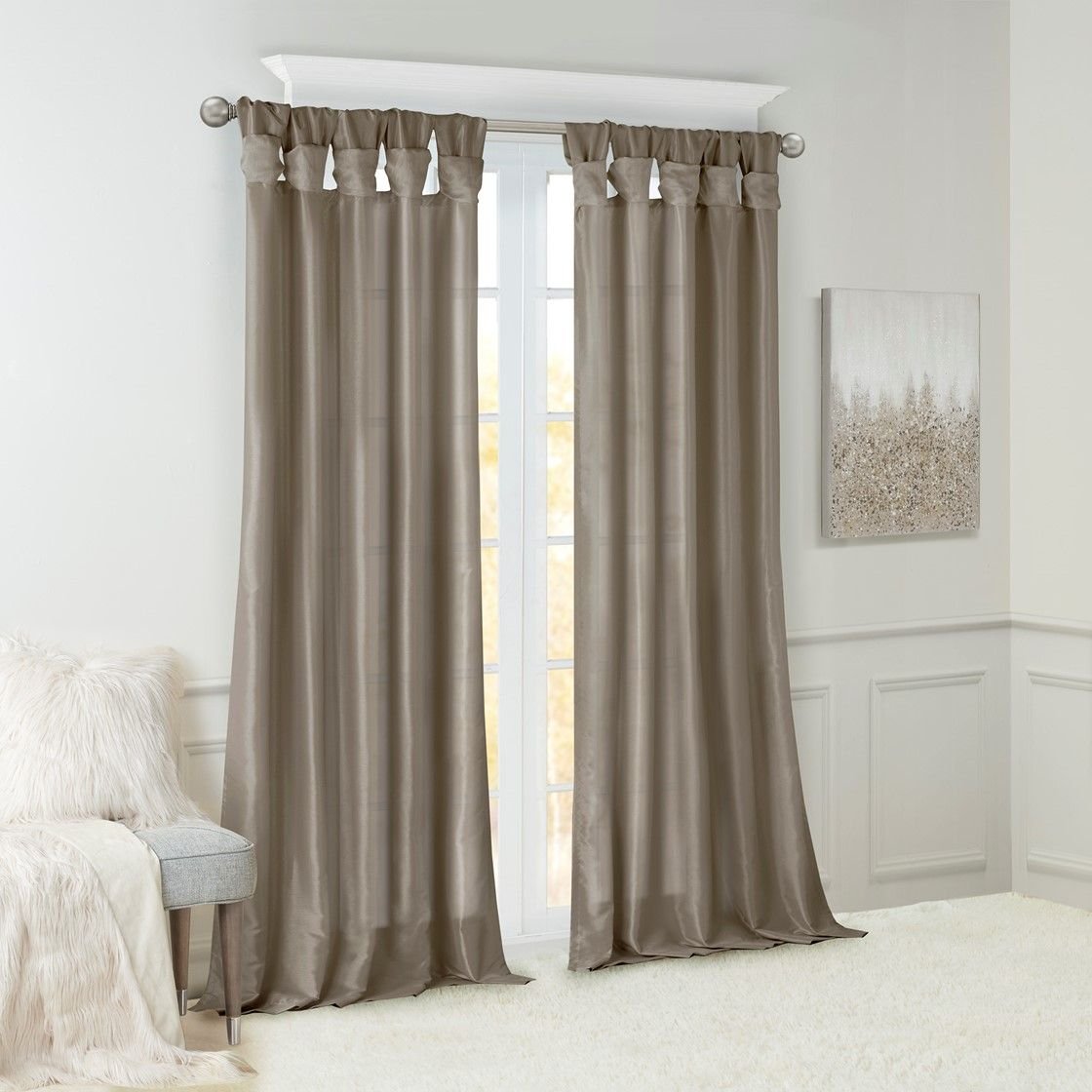 Give your home a decorator's touch with the Madison Park Emilia Window Curtain. Made from a faux silk fabric, this elegant window curtain features a DIY twist tab top finish that creates rich, deep folds for a professional look. Added lining offers more privacy and a fuller appearance, while the luxurious sheen and rich pewter tone provides a touch of sophistication to your décor. Easy to hang, this tab top curtain turns any room into a gorgeous getaway. Hanging instructions are included. Fits up to a 2" diameter rod.
