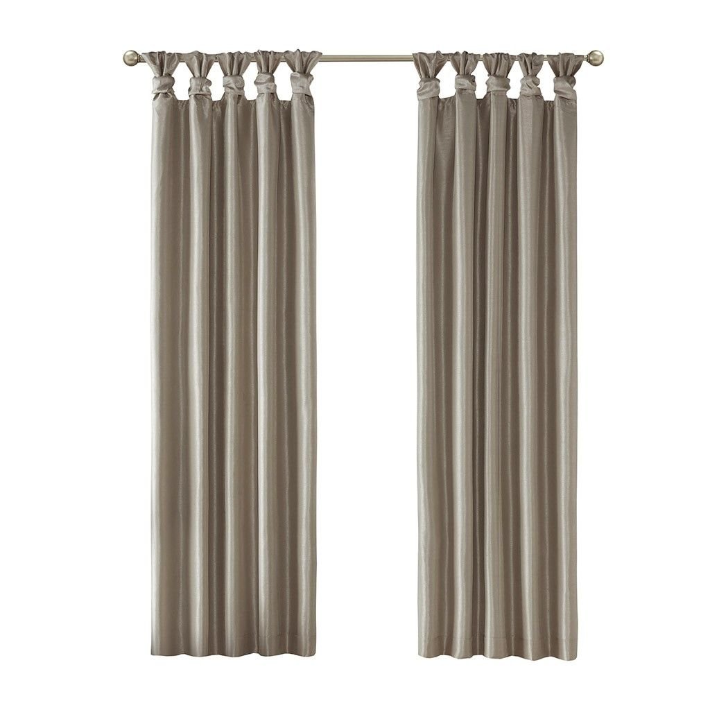 Energy efficiency meets a sophisticate style with the Madison Park Emilia Twist Tab Total Blackout Window Curtain. This pewter window curtain panel showcases a DIY twist tab top finish that allows you to create an elegant display in your living room or bedroom space. The faux silk sheen base fabric features a 3 pass foamback liner on the reverse to block out all outside light, noise, and intrusion ensuring the highest level of privacy. Using thermal technology, the total blackout curtain helps provide maximum energy savings by keeping your room the perfect temperature through the seasons. While this window panel is also OEKO-TEX certified, meaning it does not contain any harmful substances or chemicals, ensuring quality comfort and wellness. This twist tab total blackout window panel is perfect for use in bedrooms, media rooms, or any private space. As shown in the image, two curtain panels need to be purchased for each window; Fits up to a 2" diameter rod.