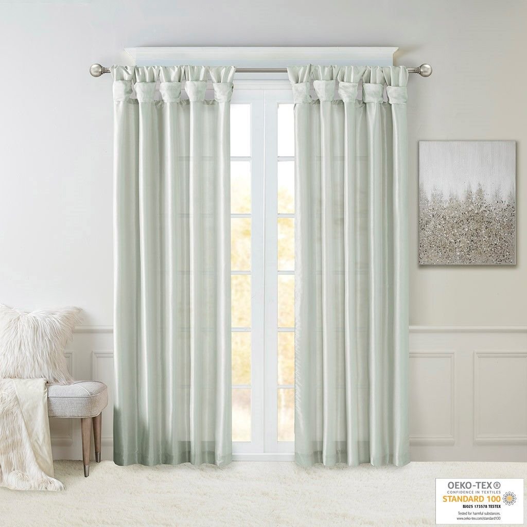 Give your home a decorator's touch with the Madison Park Emilia Window Curtain. Made from a faux silk fabric, this elegant window curtain features a DIY twist tab top finish that creates rich, deep folds for a professional look. Added lining offers more privacy and a fuller appearance, while the luxurious sheen and dusty aqua tone provides a touch of sophistication to your décor. Easy to hang, this tab top curtain turns any room into a gorgeous getaway. Hanging instructions are included. Fits up to a 2" diameter rod.