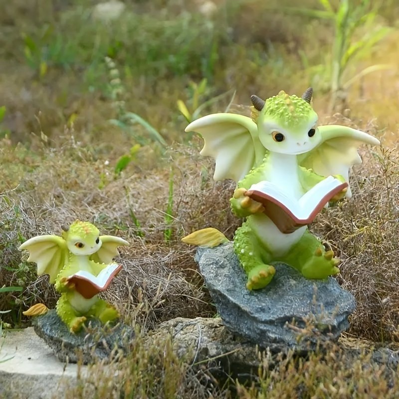 Home > 1pc Miniature Fairy Garden Figurines, Cute Resin Dragon Statue, Mini Dragon Reading Figurine, Mini Pink Dragon And Baby Statue, Fairy Garden Decor